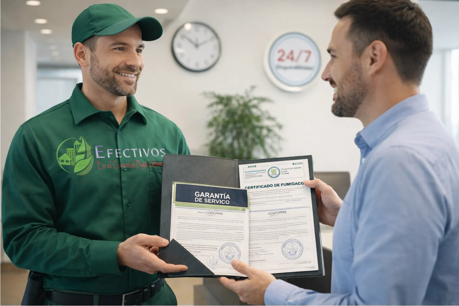 Realizamos seguimiento posterior al servicio y entregamos respaldo por escrito que garantiza la efectividad del tratamiento.